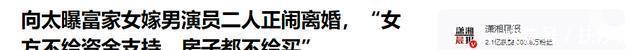 主要信源 潇湘晨报——向太曝富家女嫁男演员二人正闹离婚,“女方不给资金支持,房子都不给买”